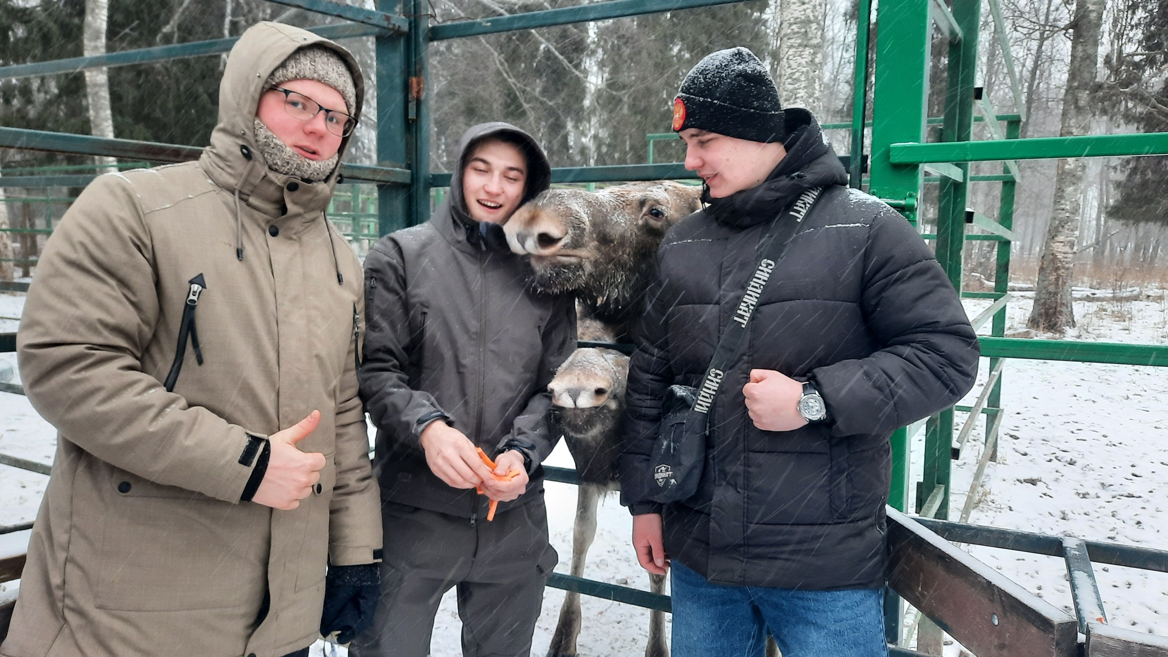 Обучающиеся посетили лосиную ферму на территории природного заповедника «Сумароковский». Студенты получили возможность наблюдать за лесными обитателями в их естественной среде, подкармливать их с руки и сделать трогательные фото с милыми животными. Лоси, несмотря на свои размеры, очень дружелюбны и любопытны. Ребята узнали о физиологии и этологии лосей, их содержании, кормлении, воспроизводстве, выращивании молодняка и получении уникального молока, а также о процессе доместикации как факторе эволюции.