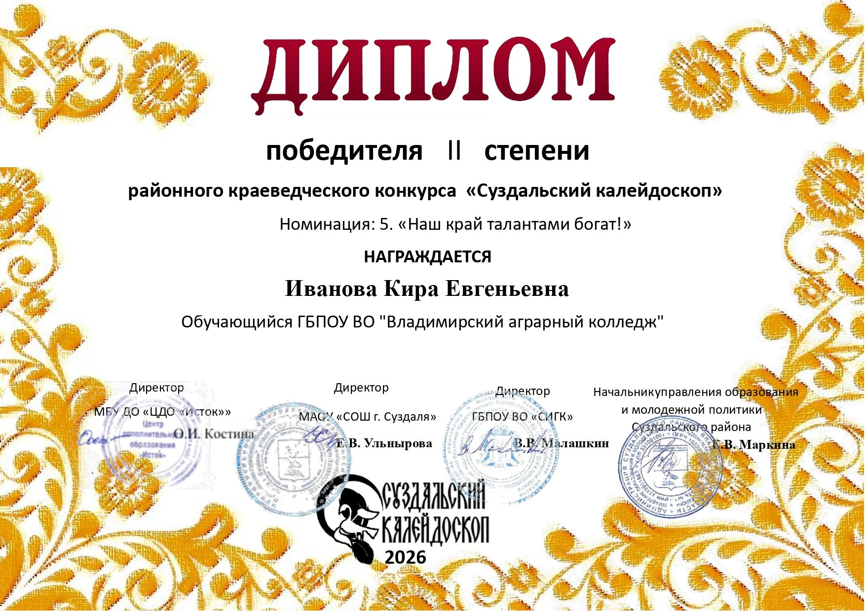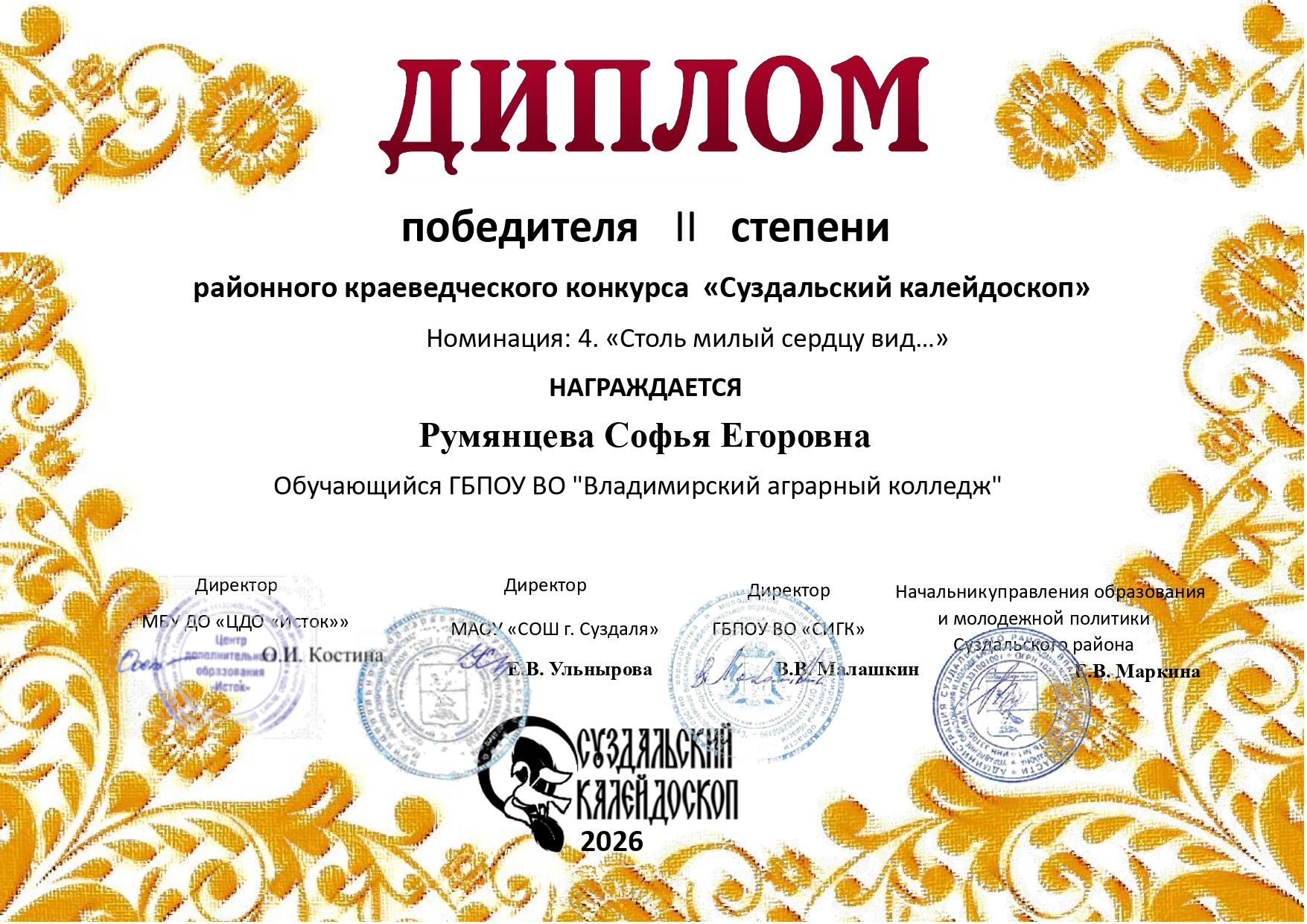 II место – Горохова И.С., ГБПОУ ВО «Суздальский индустриально-гуманитарный колледж»;