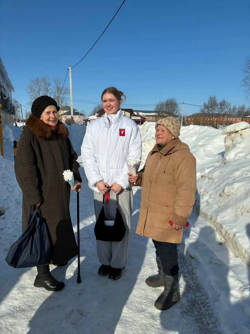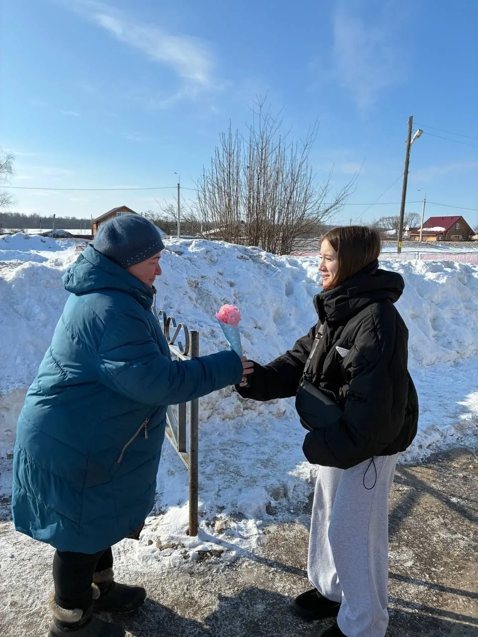 Также ависты Движения первых поздравители жителей с. Новоалександрово и подарили им букеты, сделанные своими руками.